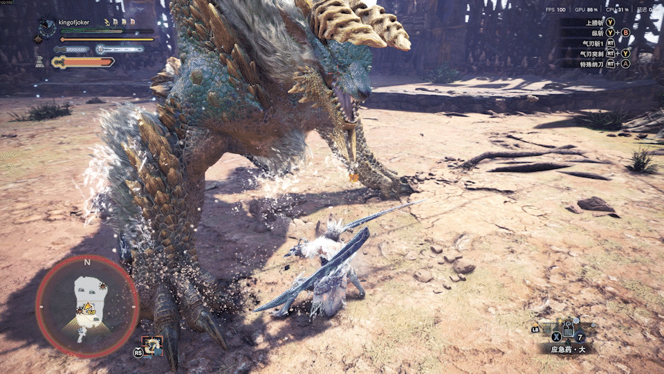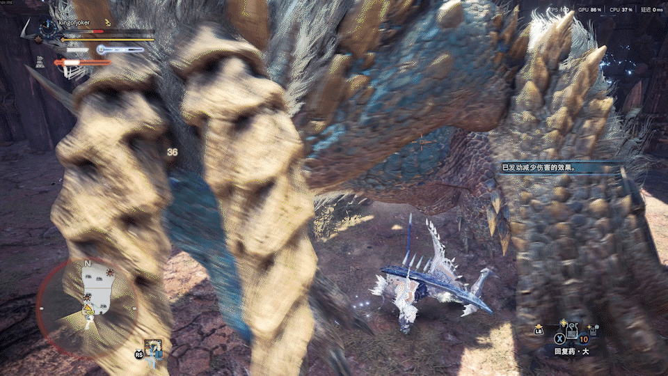 当玩家在怪物头槌攻击后位于其侧面,则会派生出【铁山靠】攻击