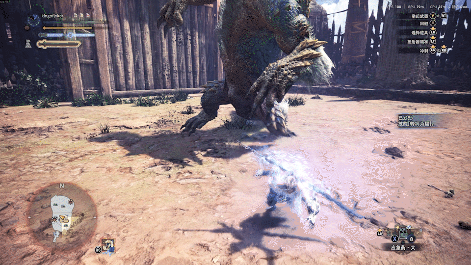 玩家可以利用这招来给自己快速增加战斗资源。(比如太刀开刃)