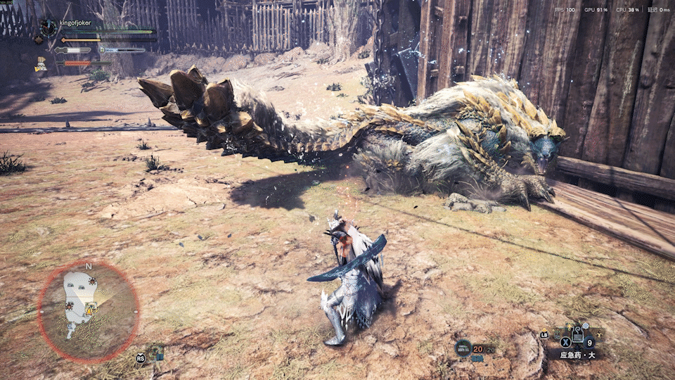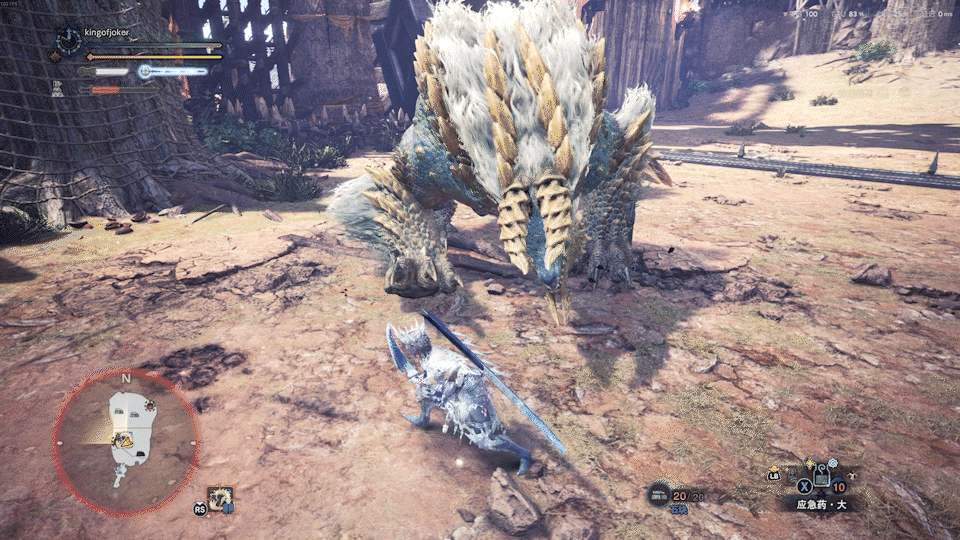 作为怪猎中比较强交互型的怪物,其连招设计重点放在与玩家交互上,多数连招玩家也使用派生技,当身技处理。